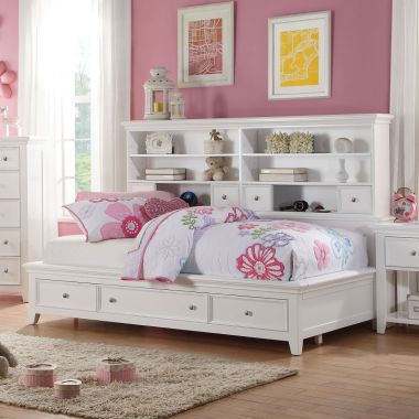 The Lacey collection blends style and function to offer contemporary style and great storage for youth bedroom in your home. Choose from a variety of color options for a sleek and sophisticated style. Complementary storage options include a nightstand, chest with drawers, dresser, mirror, and other pieces for a complete bedroom ensemble. Available in white, cherry oak and espresso finishes, these bedroom pieces feature chambered drawer fronts, chamfered trim, and rosette knobs for a modern look. Choose this collection for a warm and relaxing look in your home.Features: Box Spring Not RequiredStorage Daybed: Bookcase Back And 3 Front DrawersSlat System IncludedCasegood Drawer: Glide Center WoodDovetail EnglishDimensions: 79″W x 69″D x 54″H