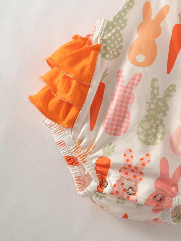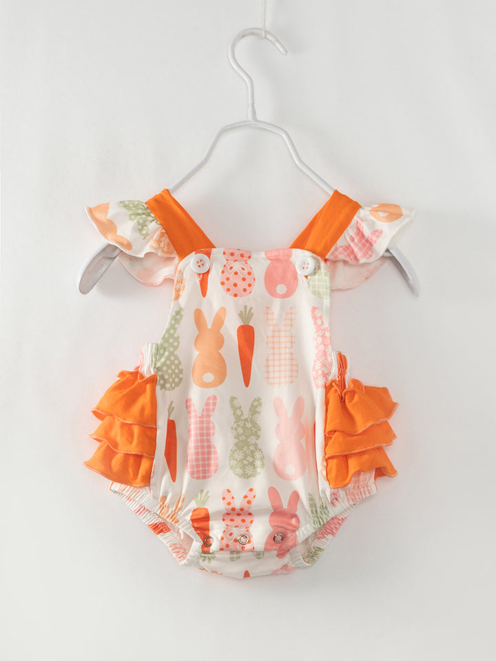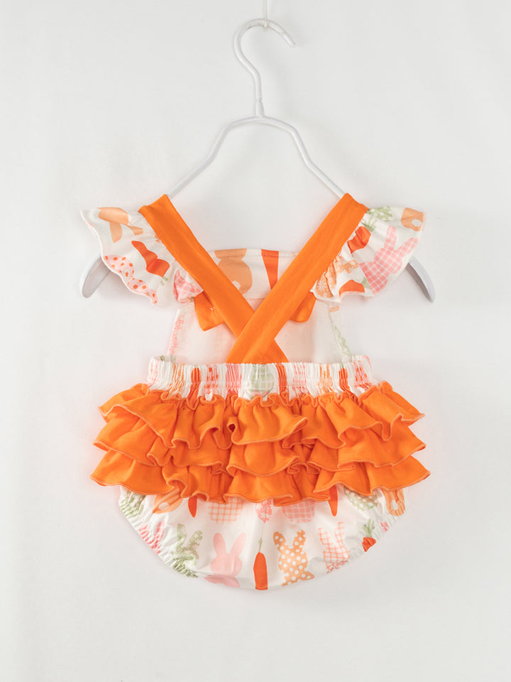 “Get your little bunny ready for Easter with our Orange Carrot Bunny Ruffle Baby Girl Romper. This adorable romper will have them hopping into the holiday in style. Perfect for family gatherings, egg hunts, and photo ops. Hop to it and grab one now!”