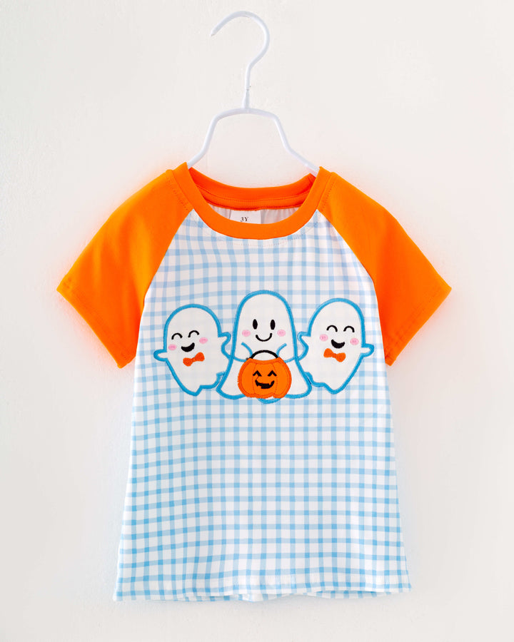 Be the first to review “Halloween Blue Plaid Ghost Boy Top”