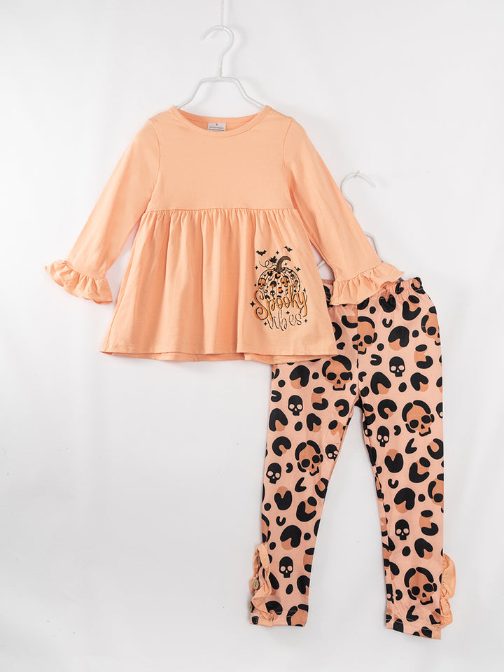 Halloween Spooky Vibes Pumpkin Ruffle Girl Pant Set