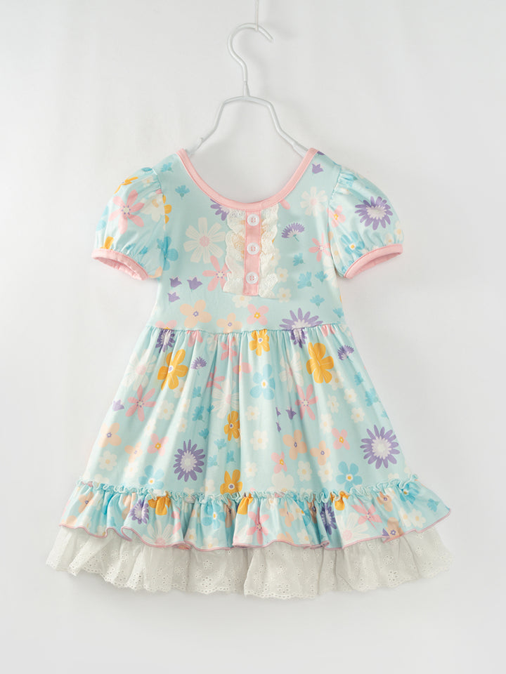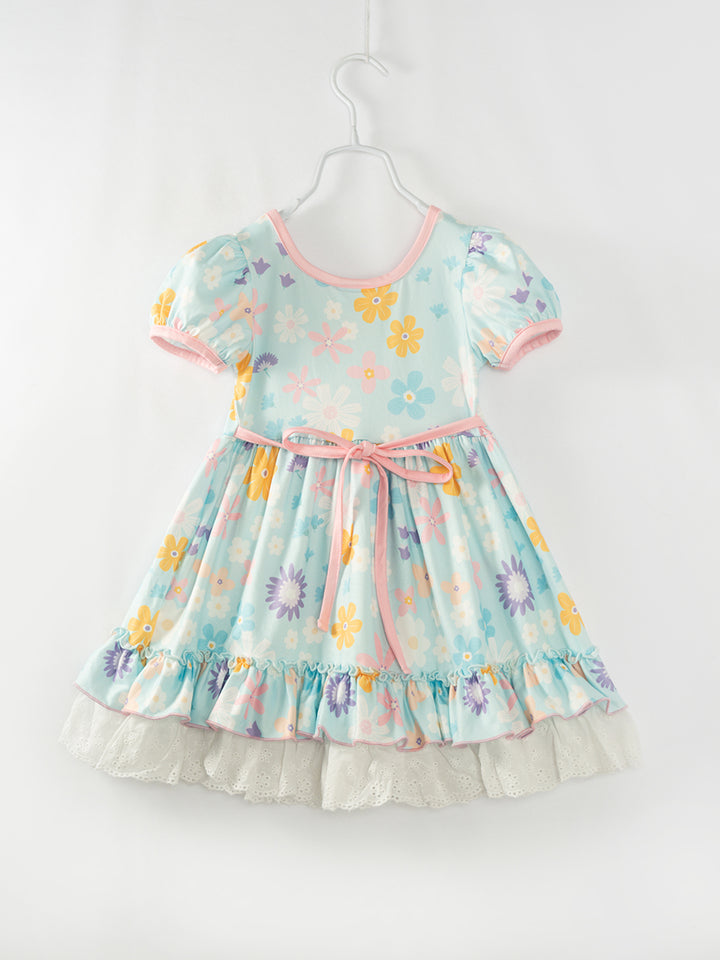 “Get ready to twirl through summer and turn heads with our Ice Blue Floral Ruffle Girl Twirl Dress. Made for the hottest season, this dress features a playful ruffled design and a gorgeous floral print. Perfect for any fun-loving fashionista!”